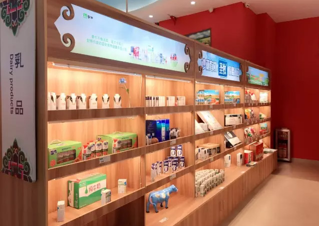 在场馆设计上,先行品牌从展馆的功能分区、结构设计入手,共设立了产品体验区,产品展示区和产品推介区三大功能区。其中,产品体验区主要是增加消费者体验,教会消费者如何做、如何更好的品尝内蒙古纯天然美食;产品展示区分为五大区域,分别是肉类,酒饮类,乳品类,特色休闲类,粮油类;产品推介区主要是介绍入驻企业情况,产品,以及内蒙古的风俗文化、民族特色。