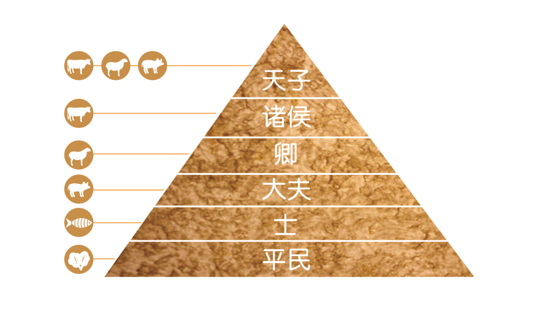“天子食太牢,牛羊豕三牲俱全,诸侯食牛,卿食羊,大夫食豕,士食鱼炙,庶人食菜。”